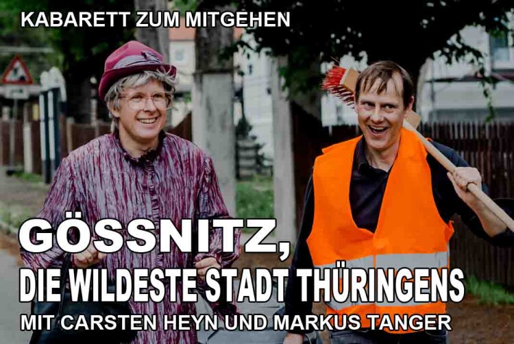 Jenseits aller roten Teppiche verlassen die beiden Kabarettisten Markus Tanger und Carsten Heyn ihr Kabarett-Zuhause, gehen mit Spaß auf die Straße und machen die Thüringische Kleinstadt Gößnitz damit zur großen Bühne: So begibt sich die kultige Kabarett-Oma Isolde Schulze gemeinsam mit dem Altenburger Straßenkehrer auf einensatirischen Streifzug durch ihre Stadt, von der Insider behaupten, sie sei die wildeste Stadt in Thüringen.Tatsächlich überrascht die liebenswerte Stadt an der Pleiße mit charmanten Winke...